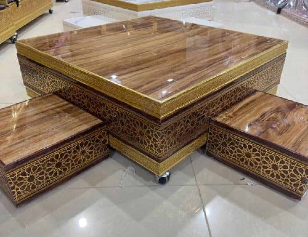 الطقم متكون من ..طاولة كبيرة 80 - 80 سم4 طوائل خدمة 30 - 30متحرك على كفراتالصناعةخشب اصليالنوع نقش اسلامي ليزر الأصليالنوع من فوق ⬆️ بديل رخام مقاوم للماء والحرارة